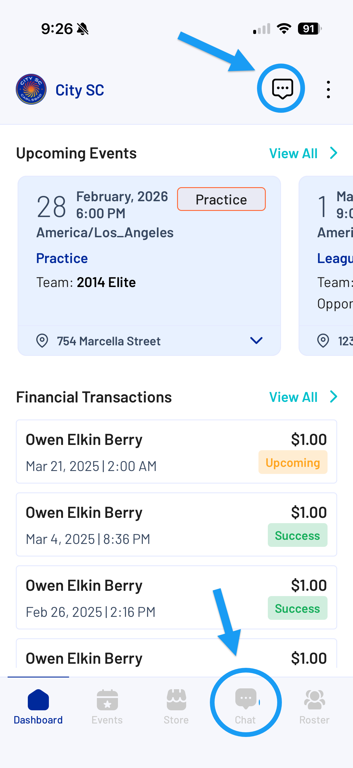 The Mobile App Chat feature allows parents, players, coaches, and team members to communicate directly within the app. You can view conversations, send messages, create group chats, and manage notifications — all in one place.