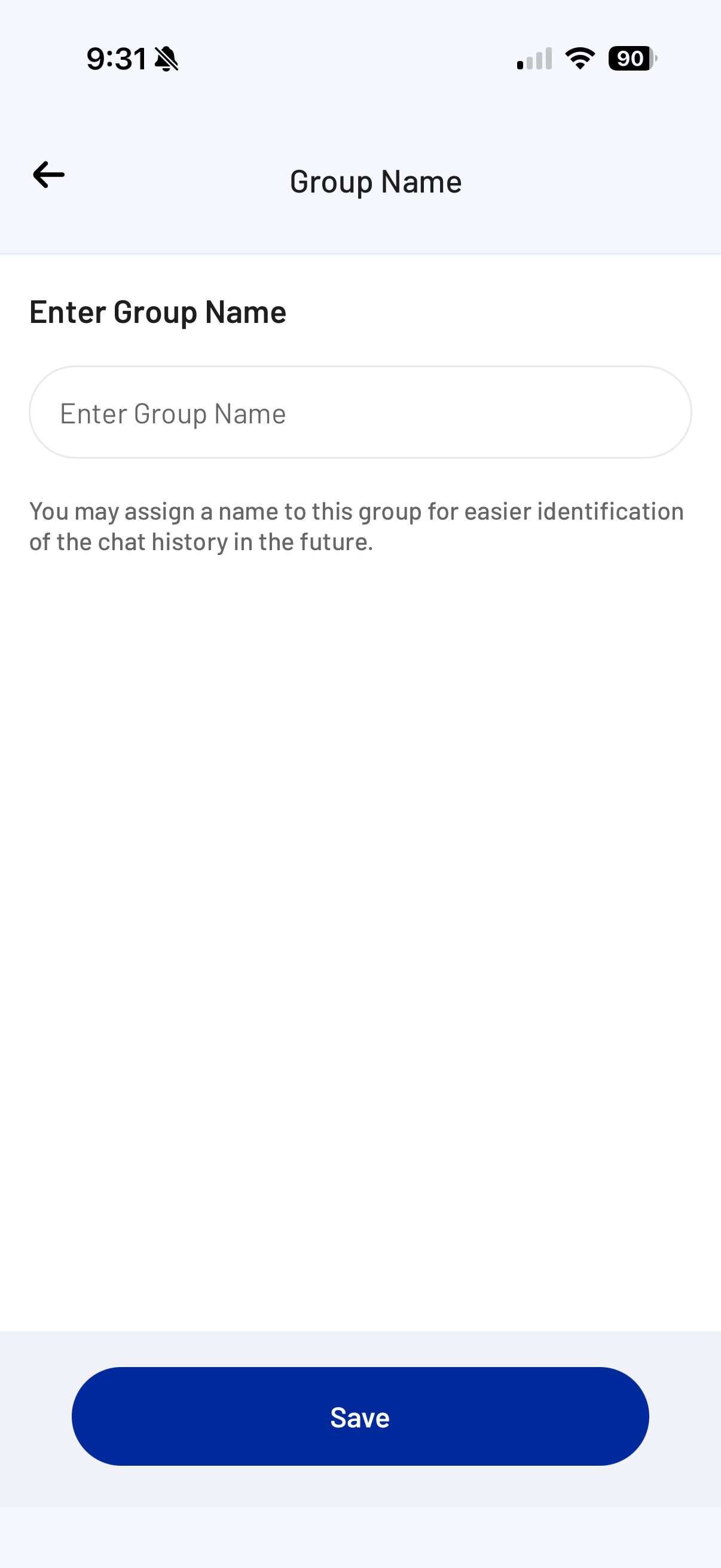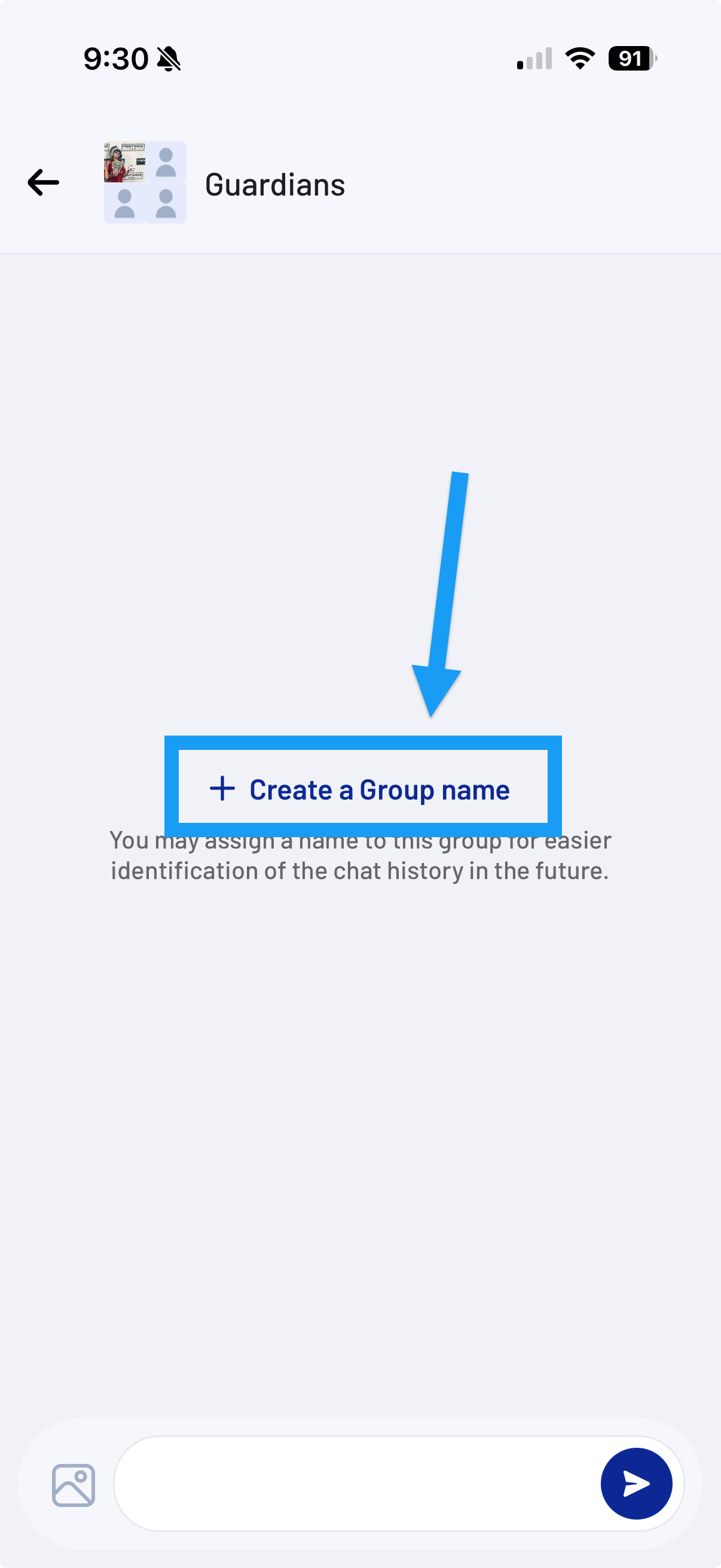 - From within the Chat window, tap the + Create a Group Name.